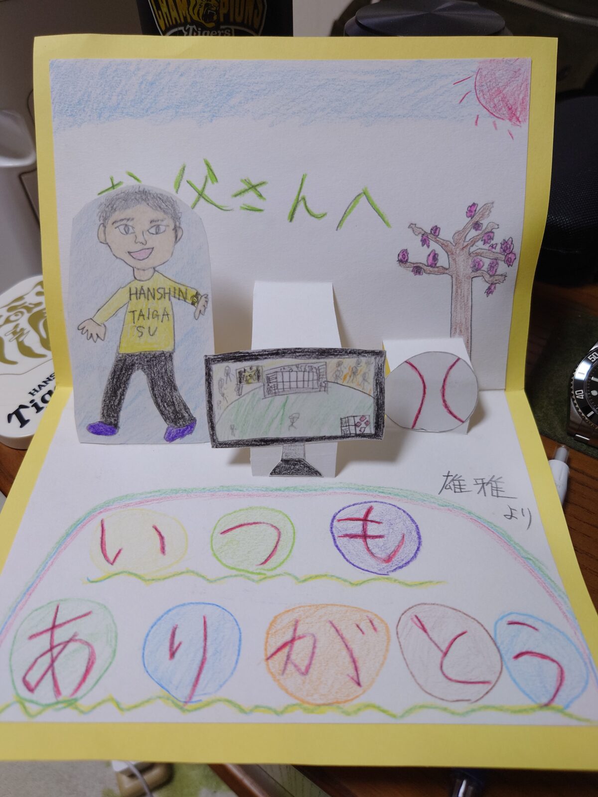 15年後?のプレゼント ホーム > スタッフブログ > 15年後?のプレゼント 先日、妻から息子(24歳・大阪在住)の部屋の整理中に渡しそびれた?恐らく父の日のプレゼントが出てきたと渡されたものに少し感動しました。 小学生の時に作ったと思いますが、Tigersのつづりが違うのは大目にみましょう(笑) 中石