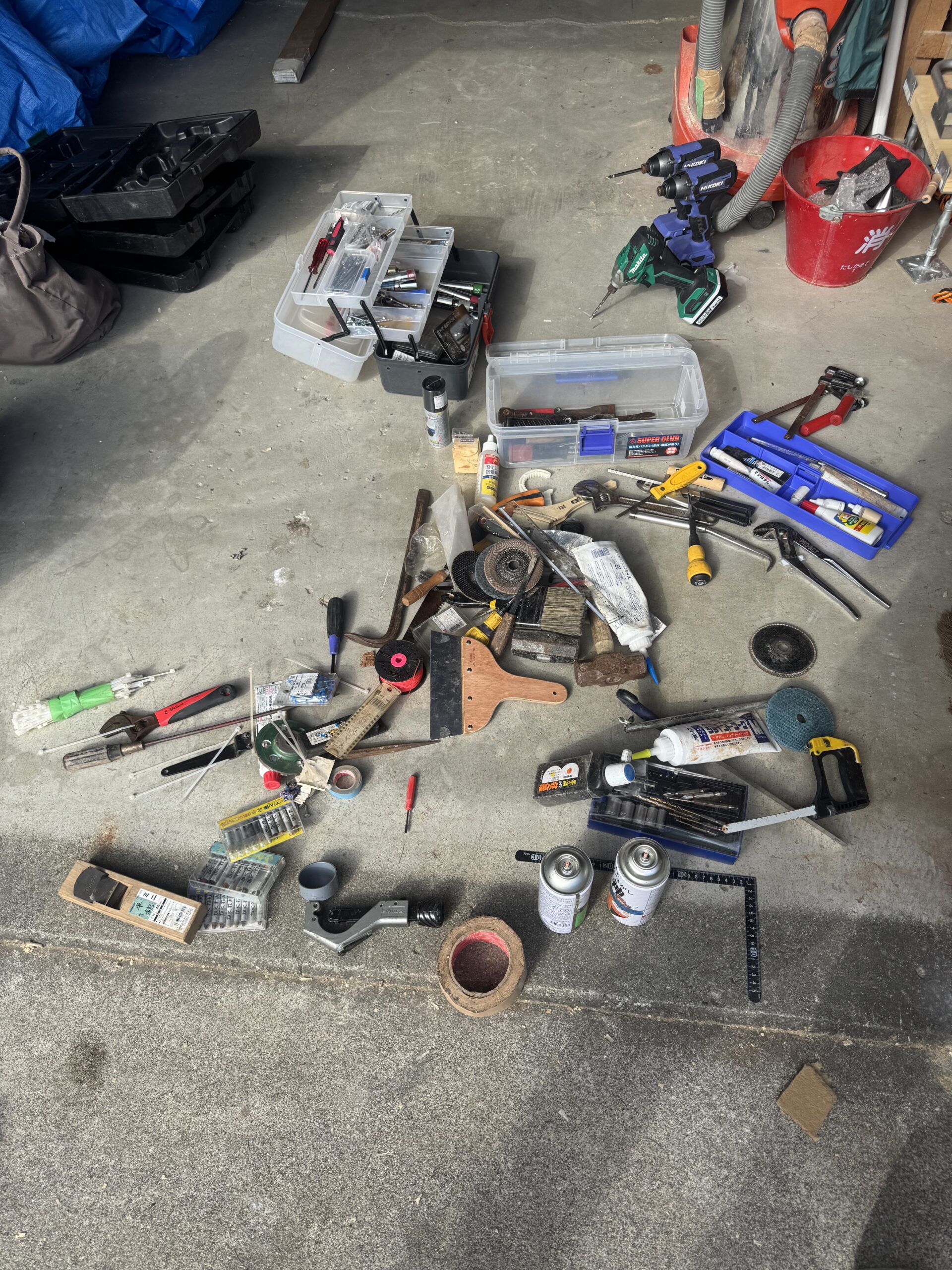 最近は倉庫内の木材や資材等の整理、在庫数の確認等をしてますが、自分の道具類が色々ありすぎてなかなか綺麗に整理ができないです。