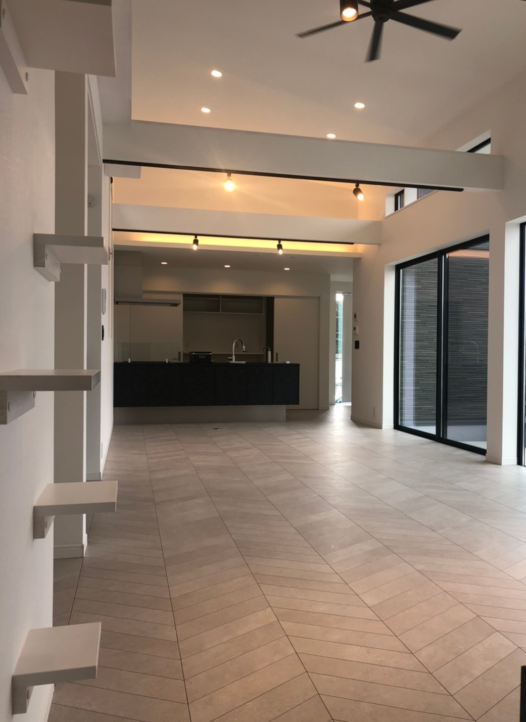 ペット(猫)と暮らす家-高知市- ホーム > 施工事例 > 担当 竹﨑 > ペット(猫)と暮らす家-高知市- ペット(猫)と暮らす家 ○ペットと幸せに暮らせるストレスフリーな間取り キャットステップを設置 ○デザイン性と実用性を両立した大容量の収納スペース ○開放感のある吹き抜けリビング ○スタイリッシュな鉄骨階段と壁のタイル貼り