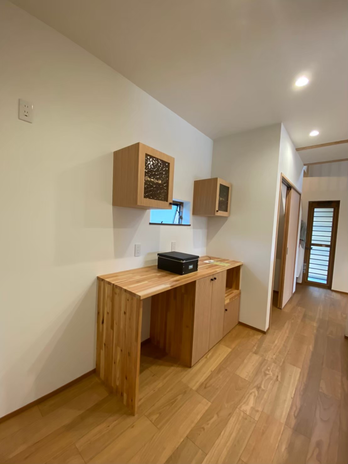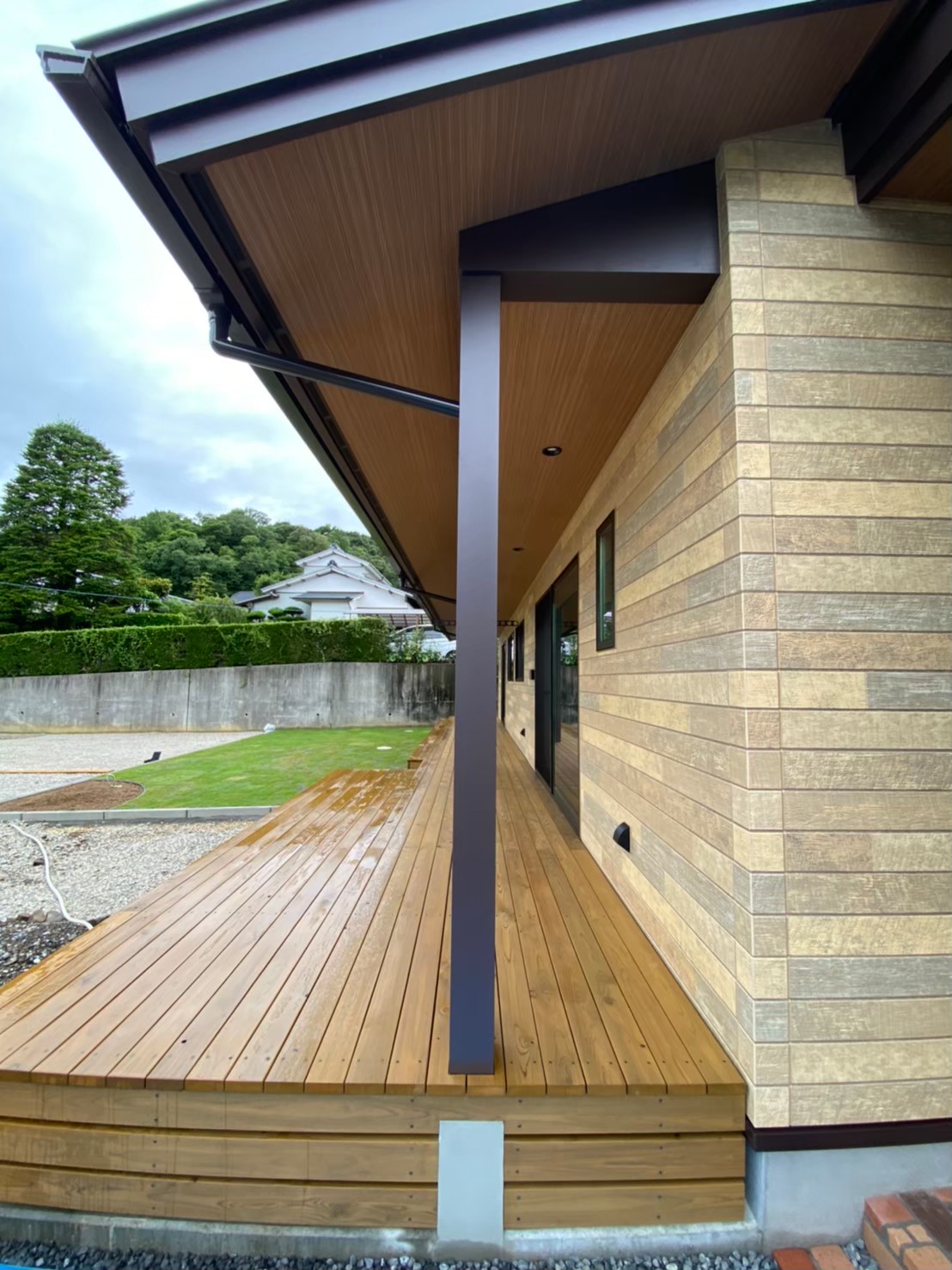軒を長くしたことで、部屋の中は暗くなったが、雨の日は便利です。