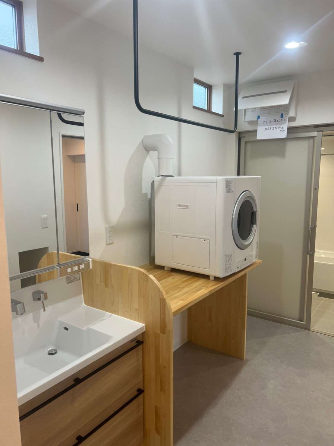 室内干しができるランドリースペースには、乾太くんを採用。玄関ホール、ファミリークローゼットへの時短動線を確保しました。