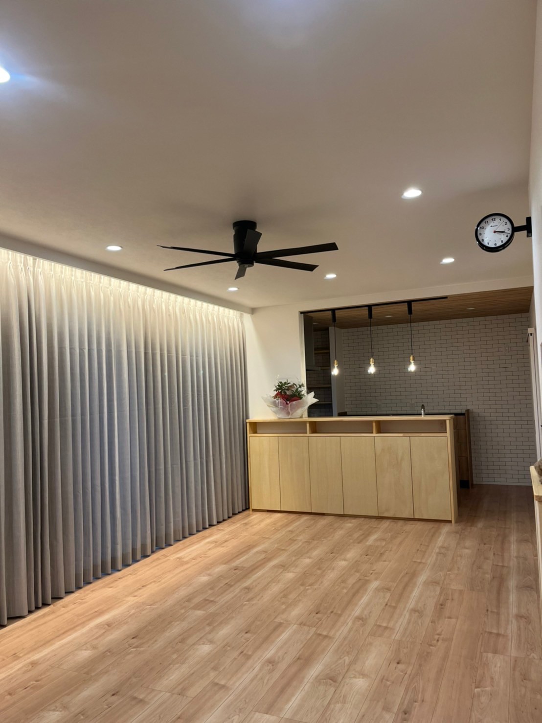 広々としたLDKは大きな窓からカーテンを開けると光が差し込み明るく開放的な空間に。