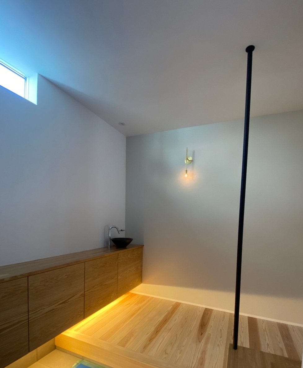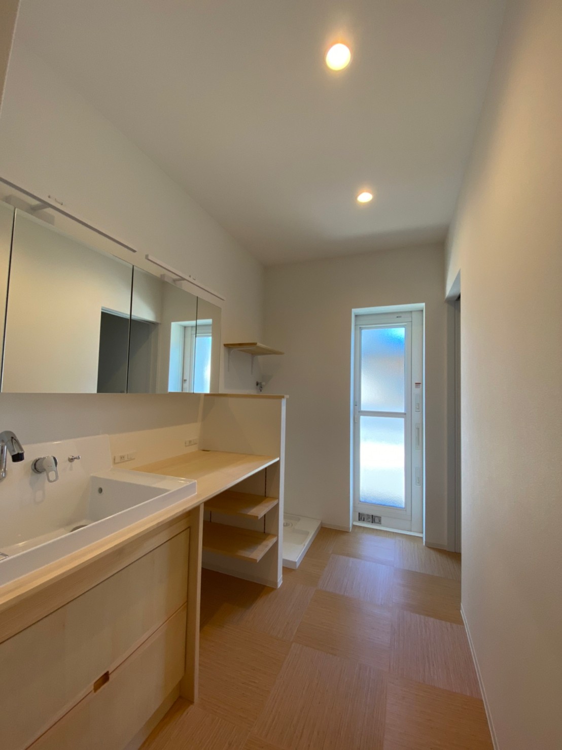 細部までこだわり、大工さんの力作の造作棚や、お施主様セレクトのセンスのいい照明器具で更に素敵に仕上がりました。