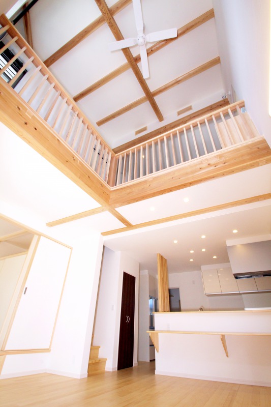 広い吹抜けのあるお家 ホーム > 施工事例 > 吹き抜け > 広い吹抜けのあるお家 広い吹抜けのあるお家 ー1階ー 全体的にナチュラルなカラーで仕上げ、シンプルですっきりした印象を持ちながらも、優しい雰囲気になりました。 ー2階ー 1階とは別世界。シックなダークブラウンを基調に大人インテリアな空間に仕上げました。
