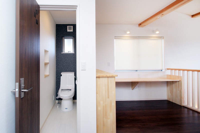 1階とは別世界。シックなダークブラウンを基調に大人インテリアな空間に仕上げました。