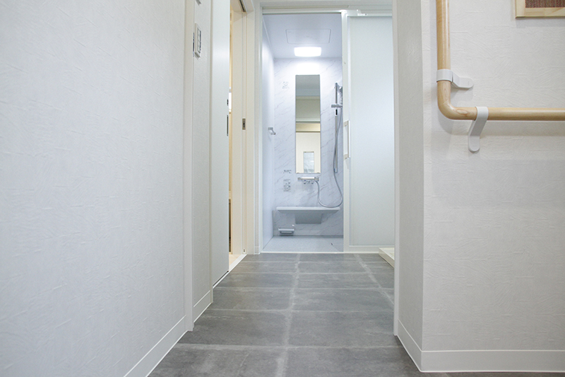 車椅子を切り返す必要がなく、お母様たってのご希望とこだわりで配置された手摺りも相まって、より快適な日常生活を送ることができます。